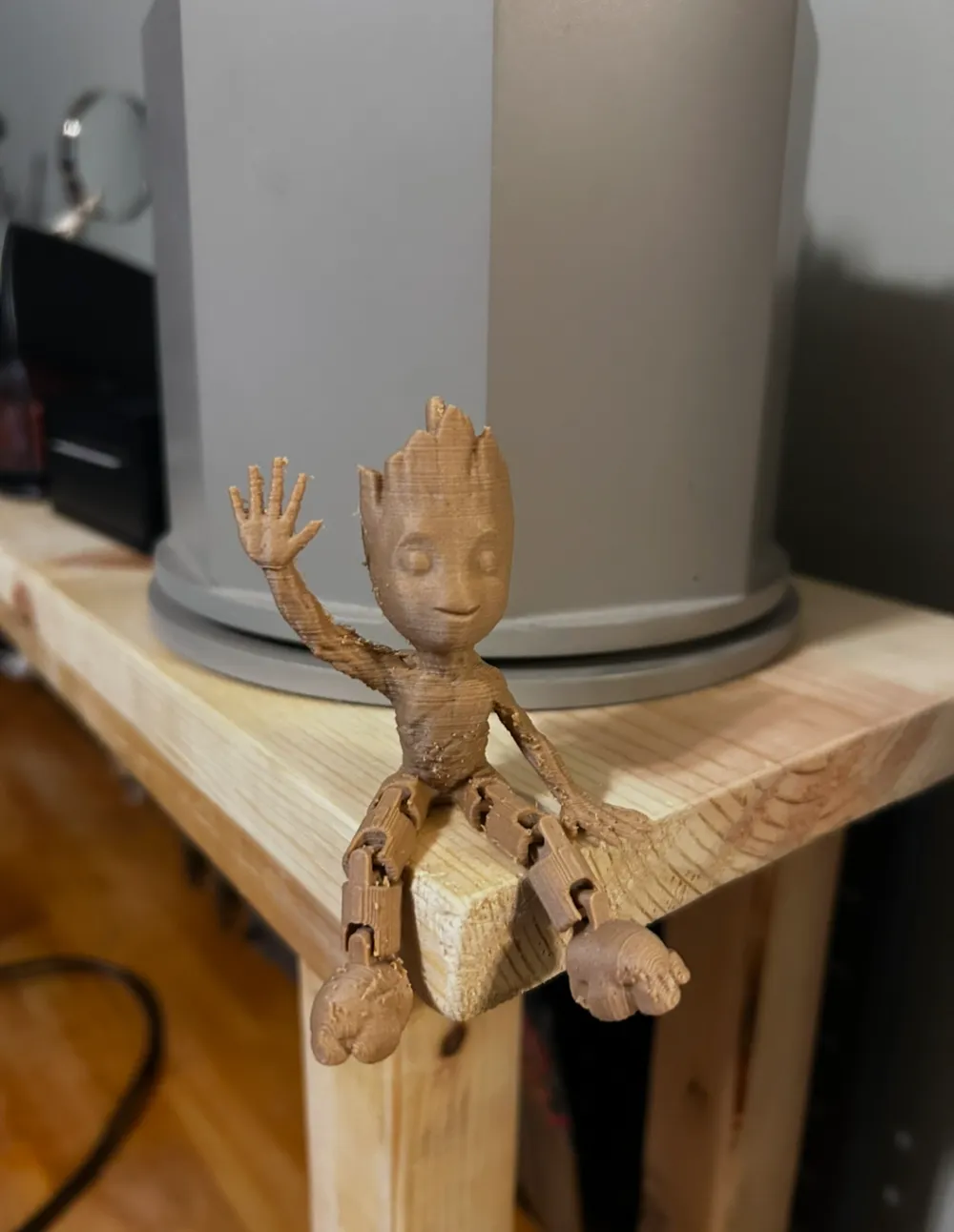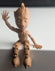 مدل فانتزی Groot نشسته با طراحی بافت چوبی و ژست بامزه